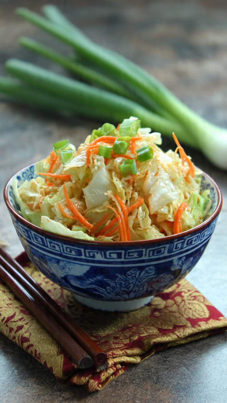 This Chinese Napa Cabbage Salad is a light, crunchy, and refreshing salad tossed with a savory-tangy Asian-style dressing. Made with crisp napa cabbage and simple