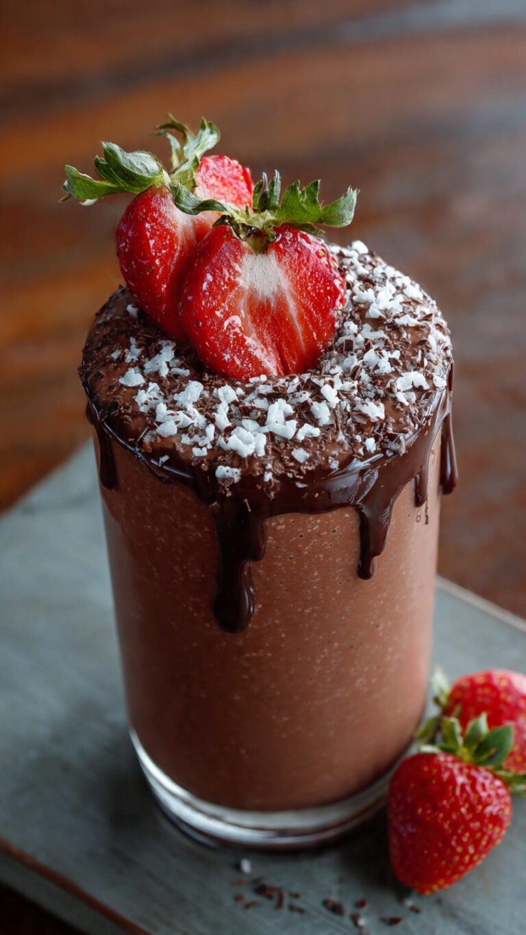 This Chocolate Strawberry Smoothie is a delicious blend of sweet strawberries and rich chocolate, creating a creamy drink that feels like dessert but fuels your
